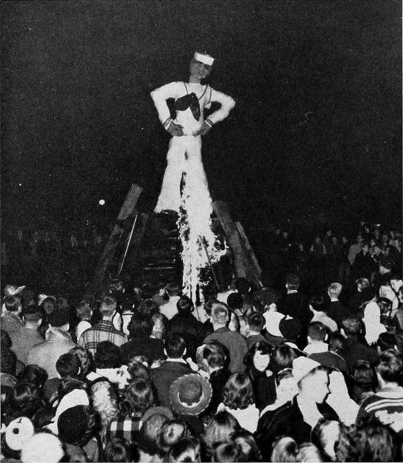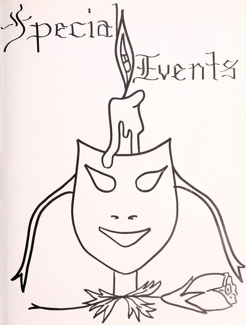 A cute concept -- though the spine of this yearbook wasn't scanned, it would be one of the books on the shelf when the covers were opened fully. From Calvin College's 1978 yearbook.