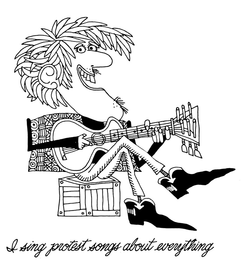 #vintage illustration #guitar #vintage yearbook #yearbook #1960s #musician #illustration #protest