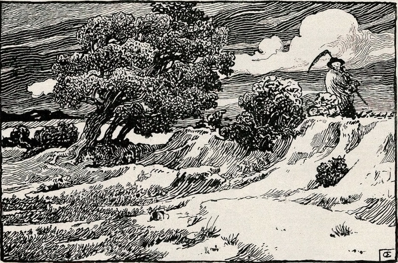 From Mocca, 1933. This other image makes an interesting pairing, with death at the top playing music and people moving in a circle below (though not on swings).