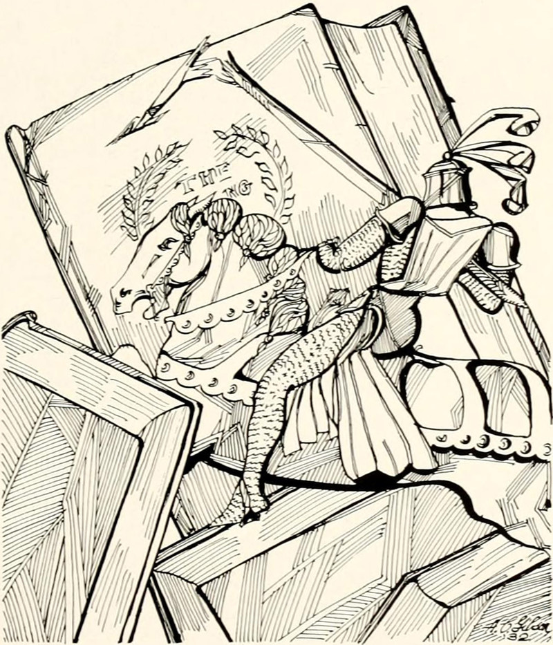 #vintage illustration #knight #books #vintage yearbook #yearbook #illustration
