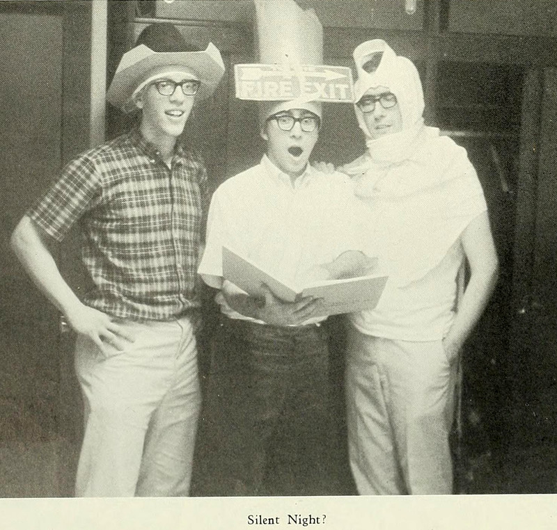 You'll have noticed the gem-like lens flares hovering in the street. These are the treasures that night people seek but rarely find due to night blindness. It takes a camera lens to see them. From Salve Regina's 1971 yearbook.