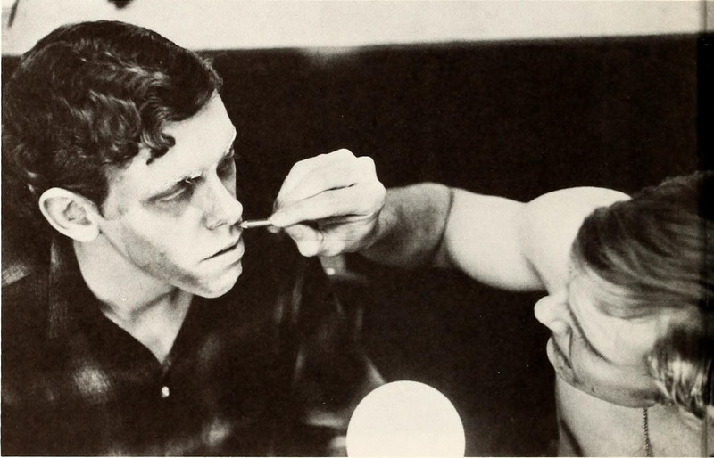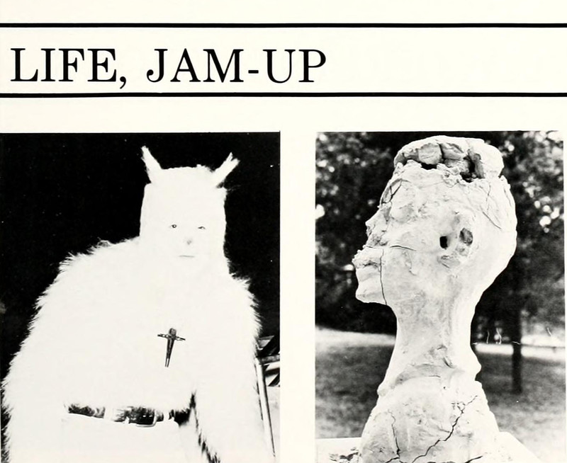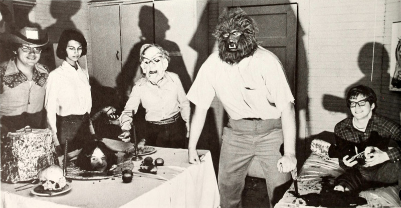 The bookshelf includes a textbook on How to Psyche Them Out, the cookbook How to Gain Weight, It's All Greek To Me, Not So Plain Speaking, Nada Mas, the three-volume East - Meets - West, and Pure Trash. From Barnard's 1978 yearbook