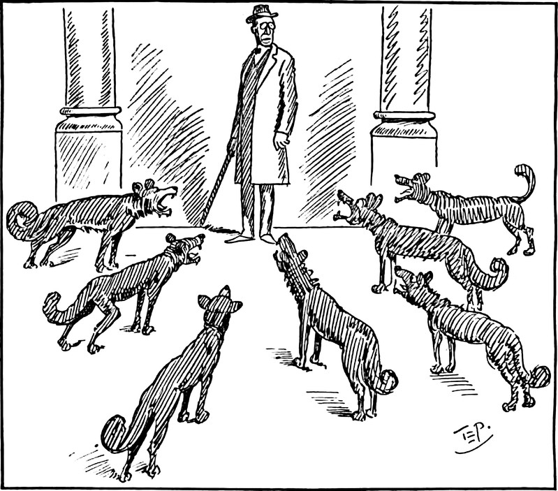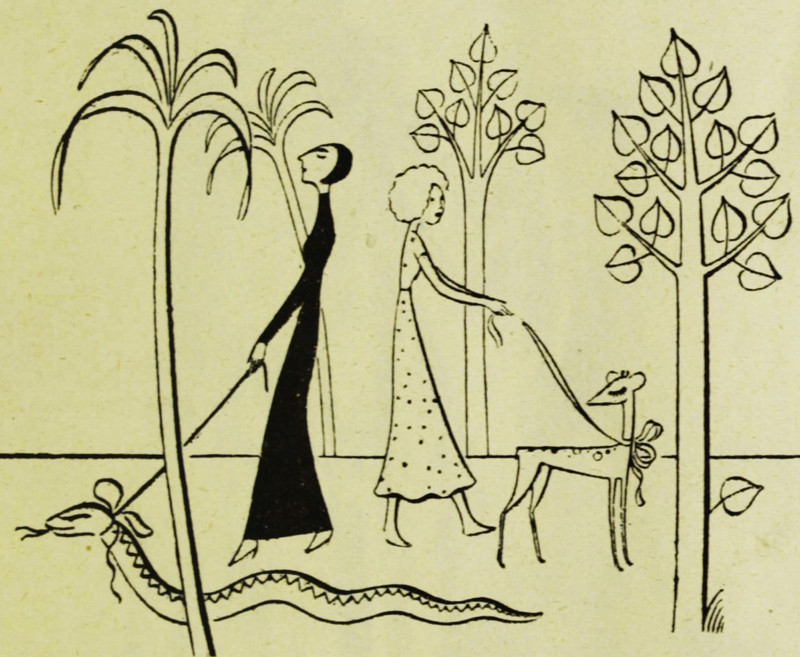 The figure in the middle has apparently completed the first several steps toward How to Be Your Own Cat. Can you tell? From Fliegende Blätter, 1926.
