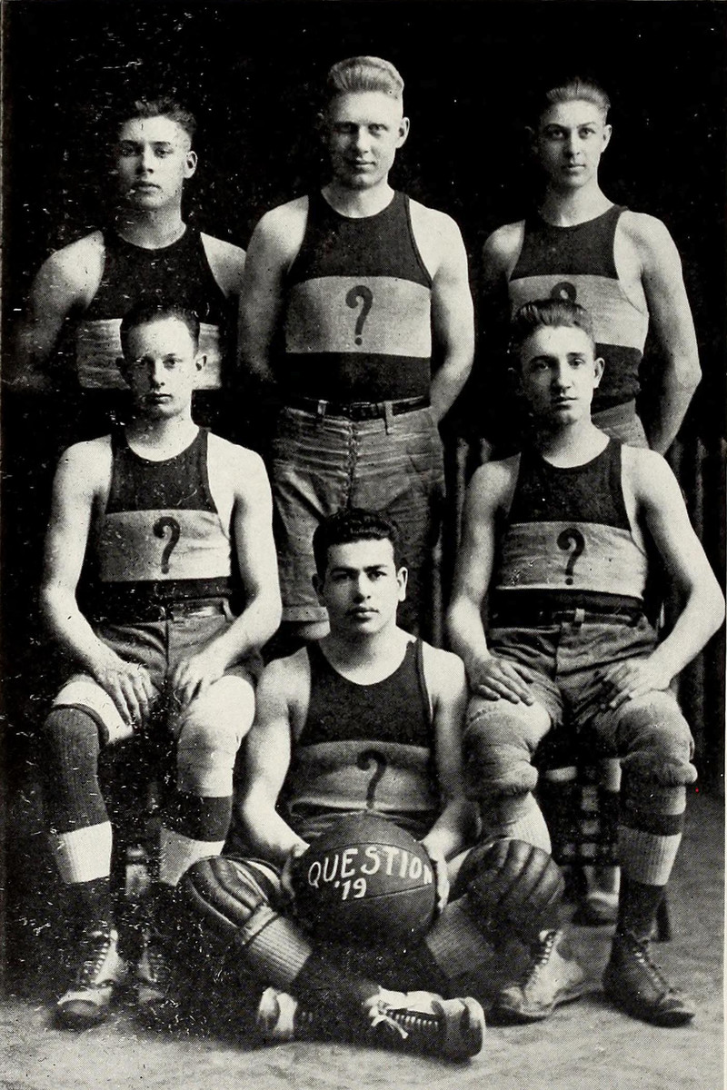 #vintage photo #vintage yearbook #yearbook #question mark #vintage men #men #basketball #1910s