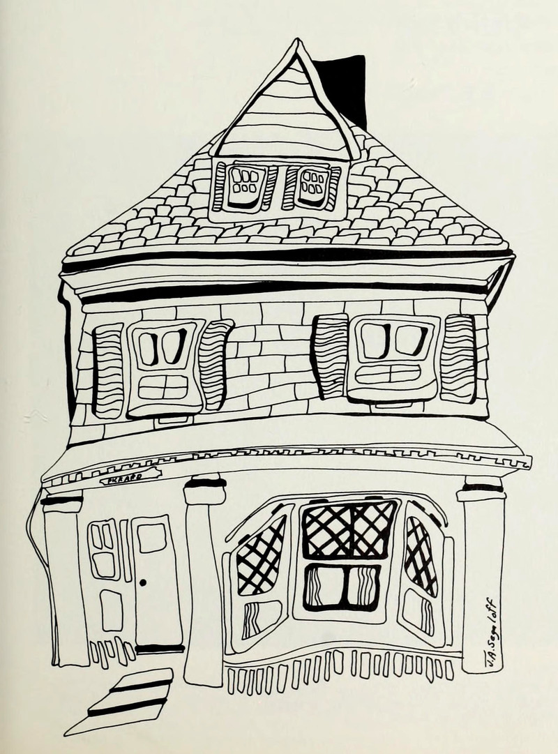 Taking a spill. It's difficult to make out, but I think he's on a carousel house that has come loose. Carousel horses are the theme of this 1934 yearbook from Colorado College.