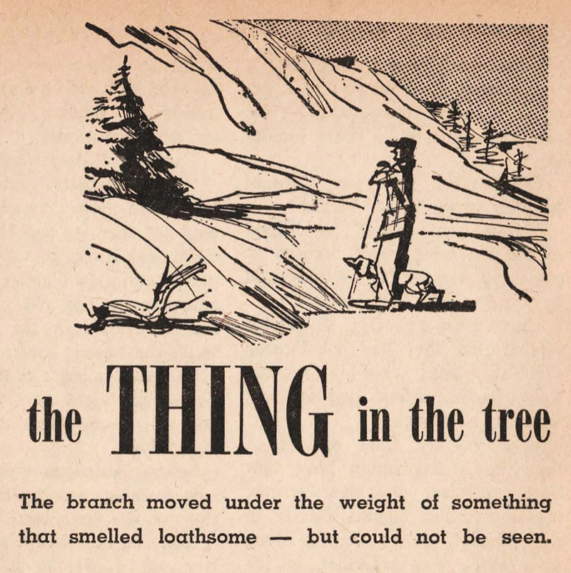 "The thing in the tree" smelled loathsome.  From Fate Magazine, 1957.