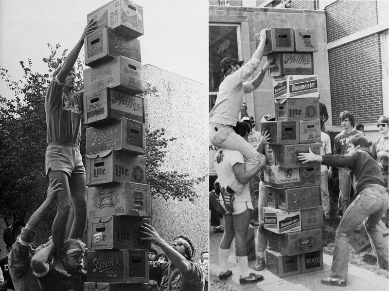 One year before the game of Jenga was marketed, folks had to do it the hard way.  From Tri-State College's 1982 yearbook.
