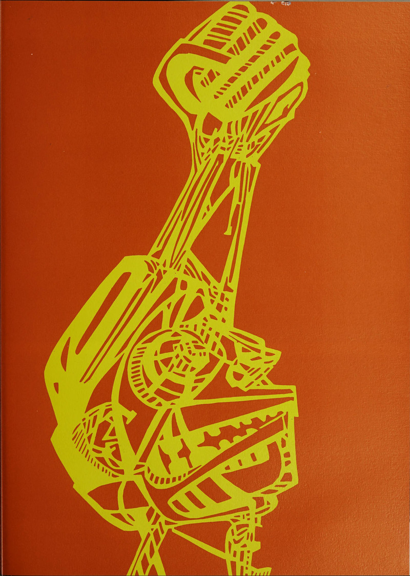 In the distance, where the third man is looking — isn't that an enormous sculpture of a human head? It also looks as though a figure is curled up in front of the head, though what we initially took as the figure's shoe seems to be a beer bottle.