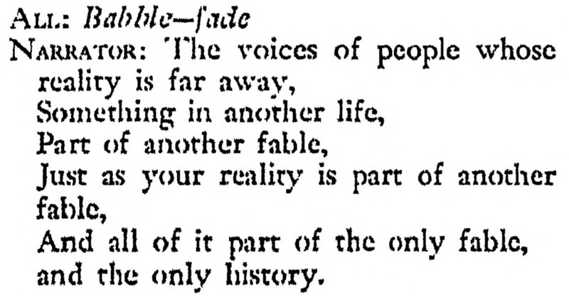 "The voices of people whose reality is far away, something in another life, part of another fable, just as your reality is part of another fable, and all of it part of the only fable, and the only history." From A Special Announcement by William Saroyan, in One Hundred Non-Royalty Radio Plays, 1941.