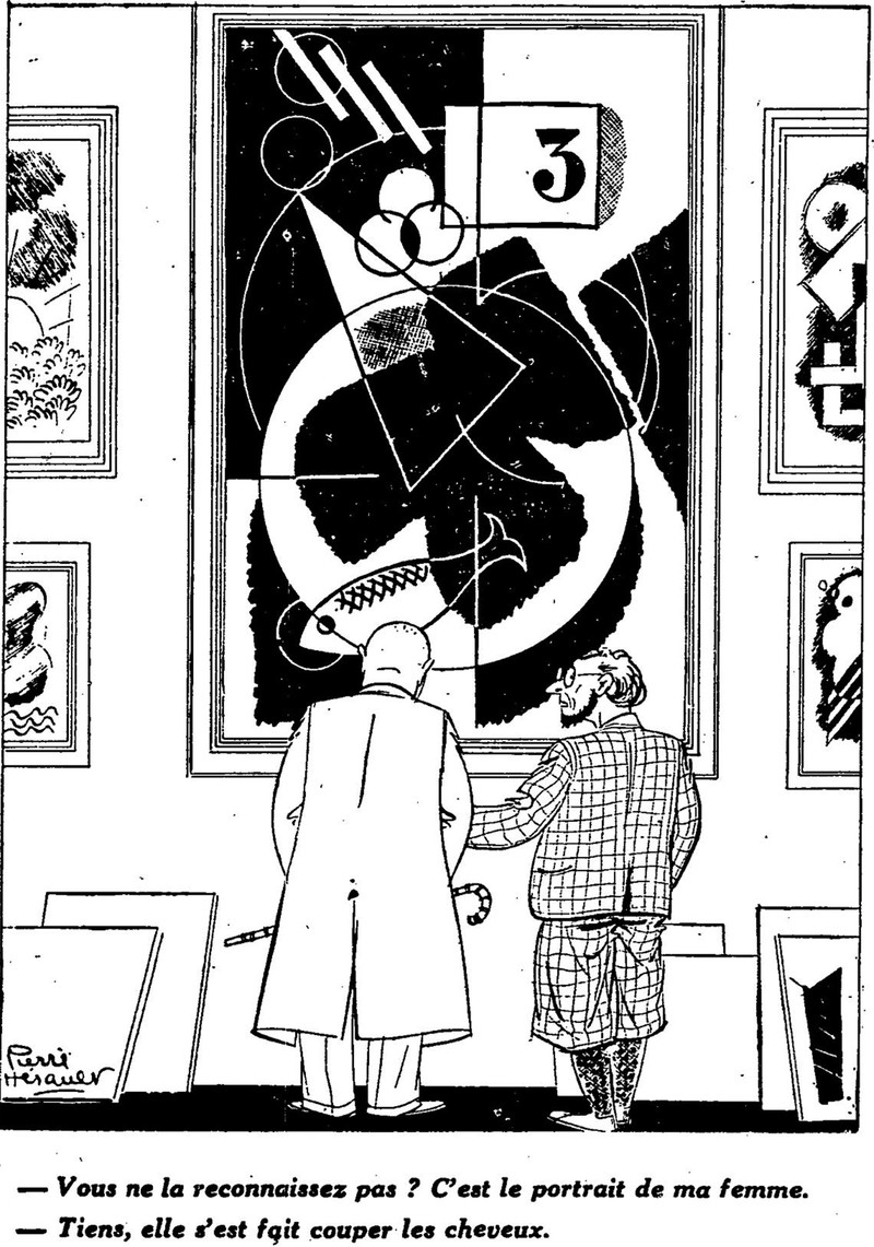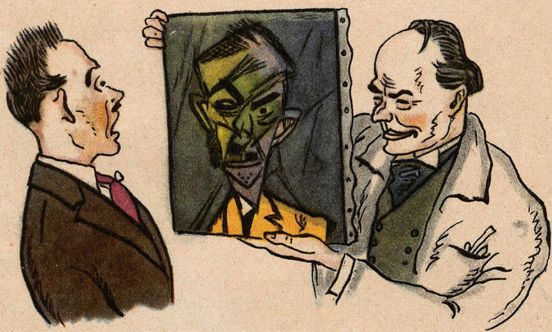 You've no doubt heard the argument that modern art is a racket engineered by art dealers, that the whole thing is a kind of vast and very expensive practical joke. In a letter to Esther Harding (7/8/47), Carl Jung wrote, "I am only prejudiced against all forms of modern art. It is mostly morbid and evil on top [of that]." Our illustration is from Fliegende Blätter, 1931.