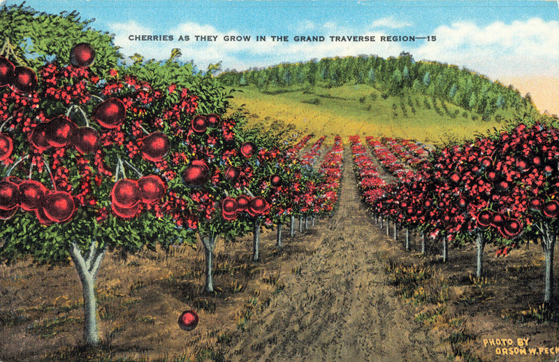 #vintage illustration #tree #vintage postcard #michigan #illustration #orchard #cherry #fruit #postcard