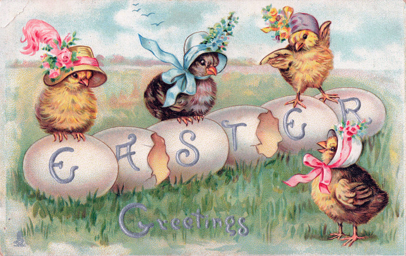 #vintage illustration #anthropomorphism #easter #vintage postcard #egg #chick #illustration #easter egg #postcard