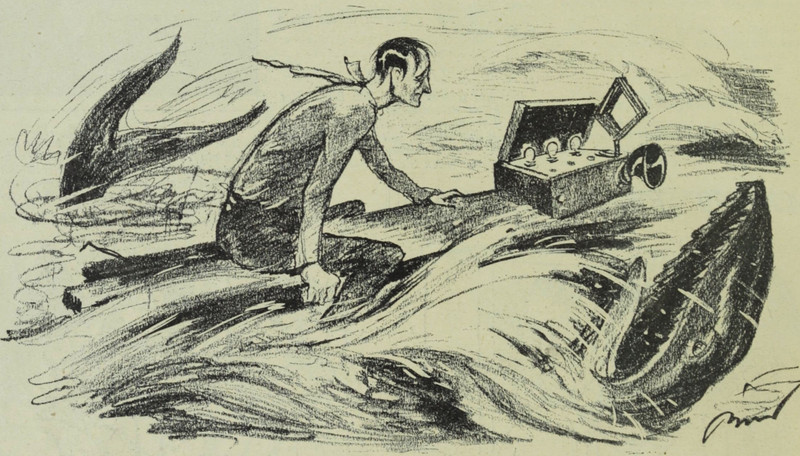 #vintage illustration #shipwreck #radio #shark #illustration #stranded
