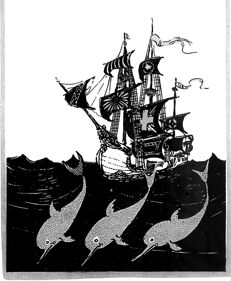 "I saw a ship a-sailing, a-sailing o'er the sea. And it was full of pretty things for dolly and for me." From Illinois Wesleyan University's 1909 yearbook.
