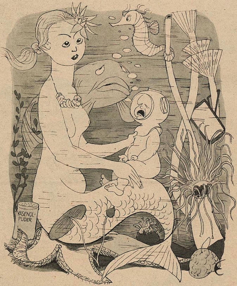Here we learn that King Neptune wears slippers. From Jugend, 1905.