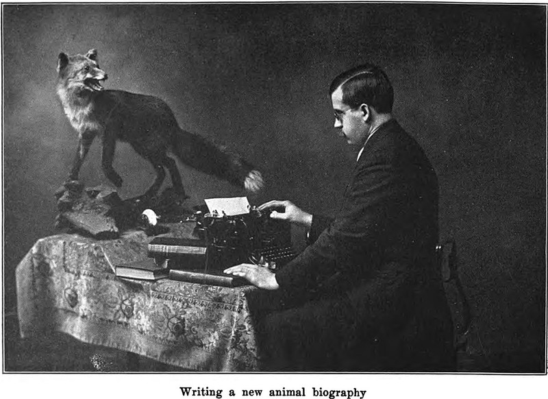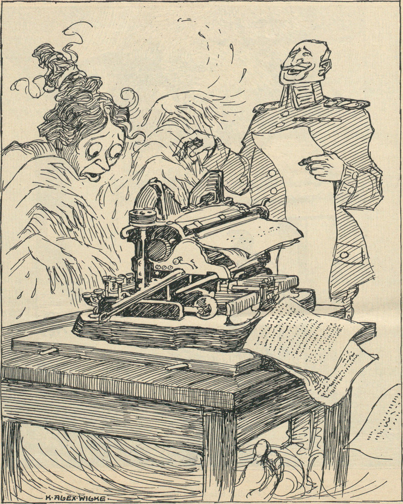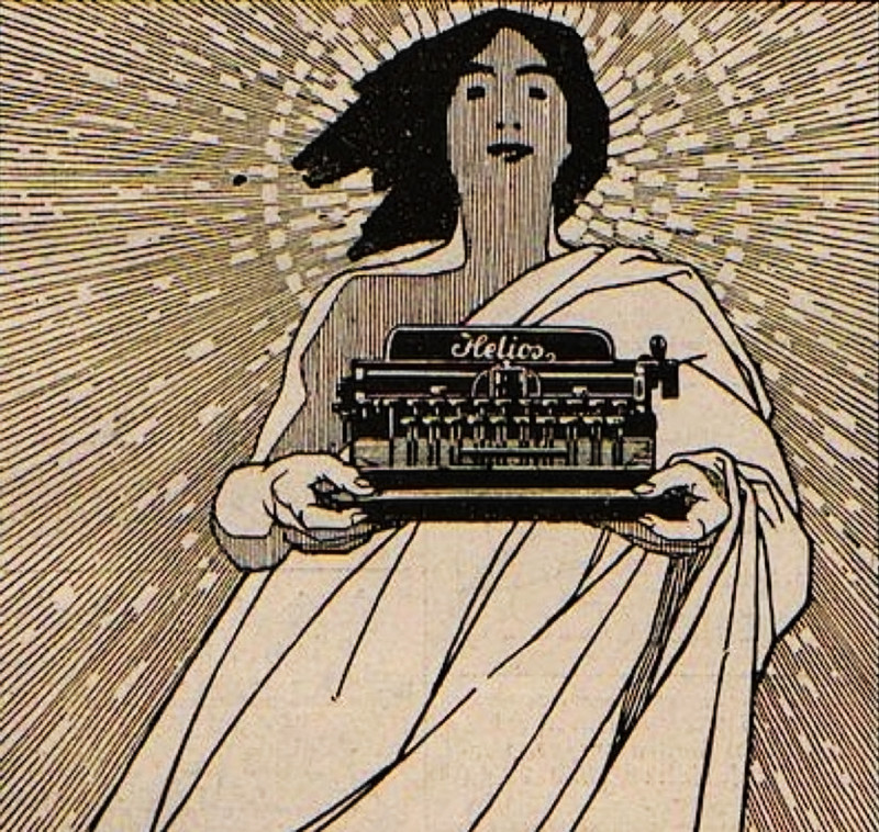 Which came first, the world of typewriter art or the, um, art of the typewriter world? Our illustration of the typewriter world appears as an ad in Rod and Gun, 1891.
