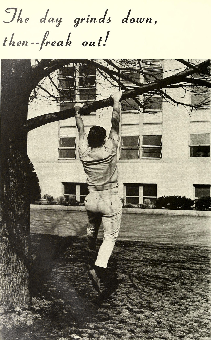 "The day grinds down, then — freak out!"  From Norteastern University's 1967 yearbook.