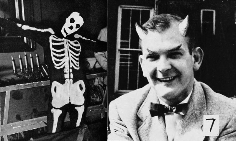 #devil #skeleton #vintage yearbook #yearbook #hallowe'en #costume #19th #horned man #1950s