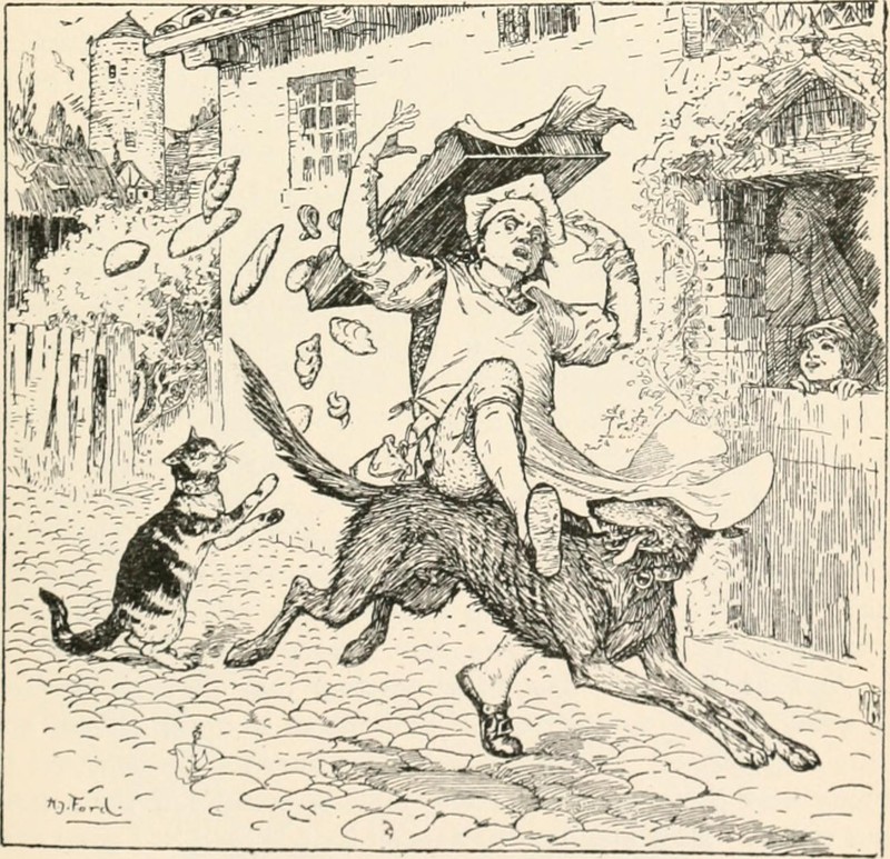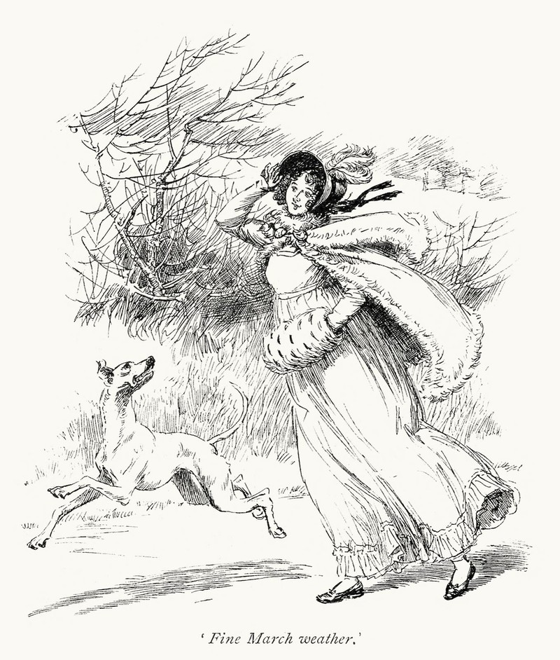 "And make the puppy dance a jig, / When he began to quote Augustine." From Every-day Characters by Winthrop Mackworth Praed and illustrated by Cecil Charles Windsor, 1896.