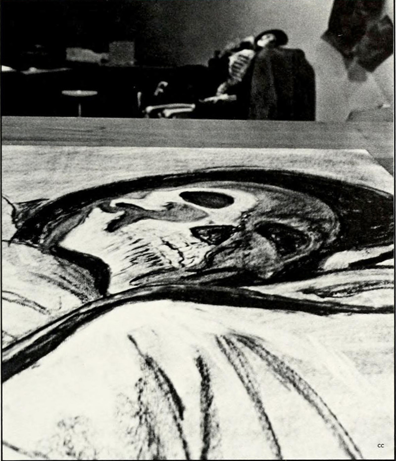 We presume that's the skeletal art model in the background.  From Wake Forest's 1977 yearbook.