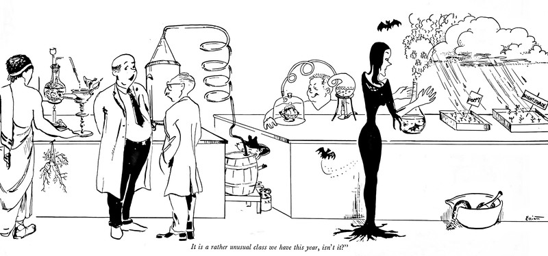 #vintage illustration #vintage yearbook #yearbook #chemistry #addams family #illustration #1950s #morticia addams