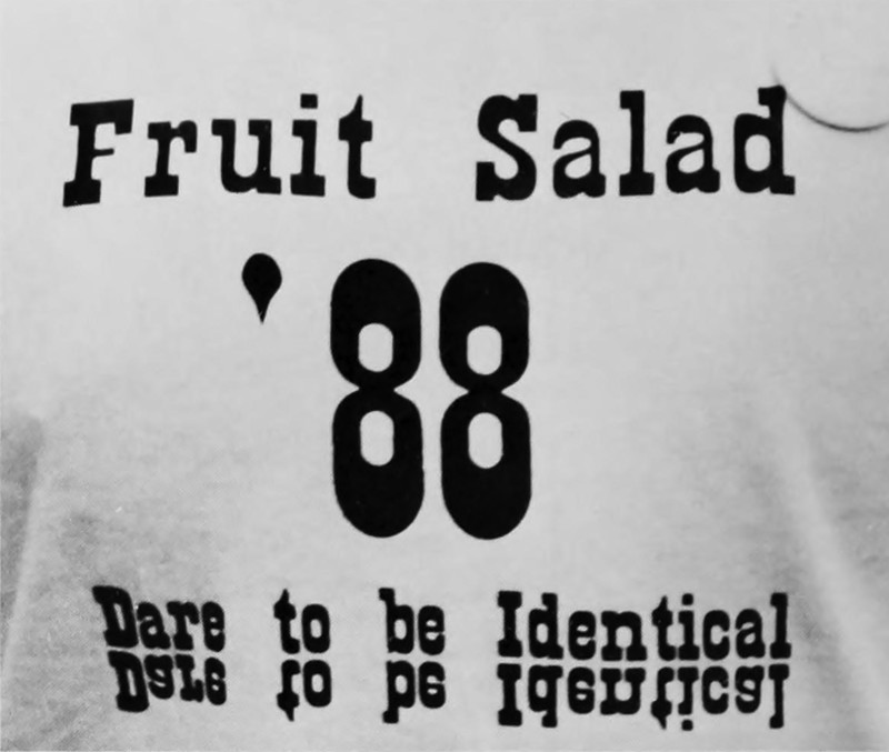 "Dare to be identical."  From the University of Illinois at Urbana-Champaign. University High School's 1989 yearbook.