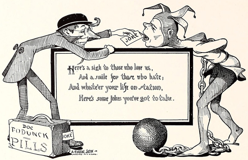 It's rarely discussed, but jesters are prescribed jokes the way more serious folks are prescribed headache remedies.  From Erskine's 1906 yearbook.