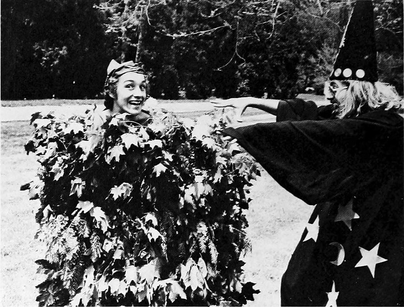 A cute concept -- though the spine of this yearbook wasn't scanned, it would be one of the books on the shelf when the covers were opened fully. From Calvin College's 1978 yearbook.