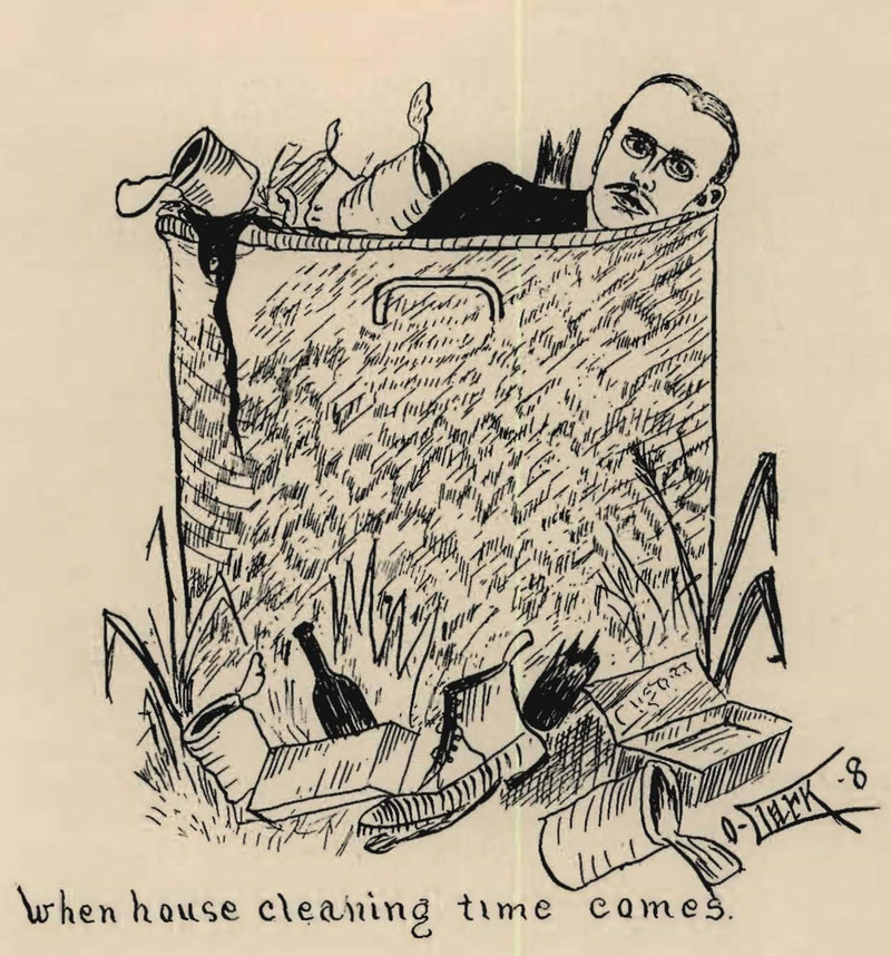 You've heard of throwing out the baby with the bathwater, and apparently this guy got trashed during house cleaning. From Washington State's 1906 yearbook.