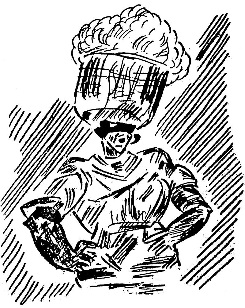 The barber is standing behind his client, but at first glance we thought the barber had a giant face on the back of his coat. From Augustana's 1918 yearbook.