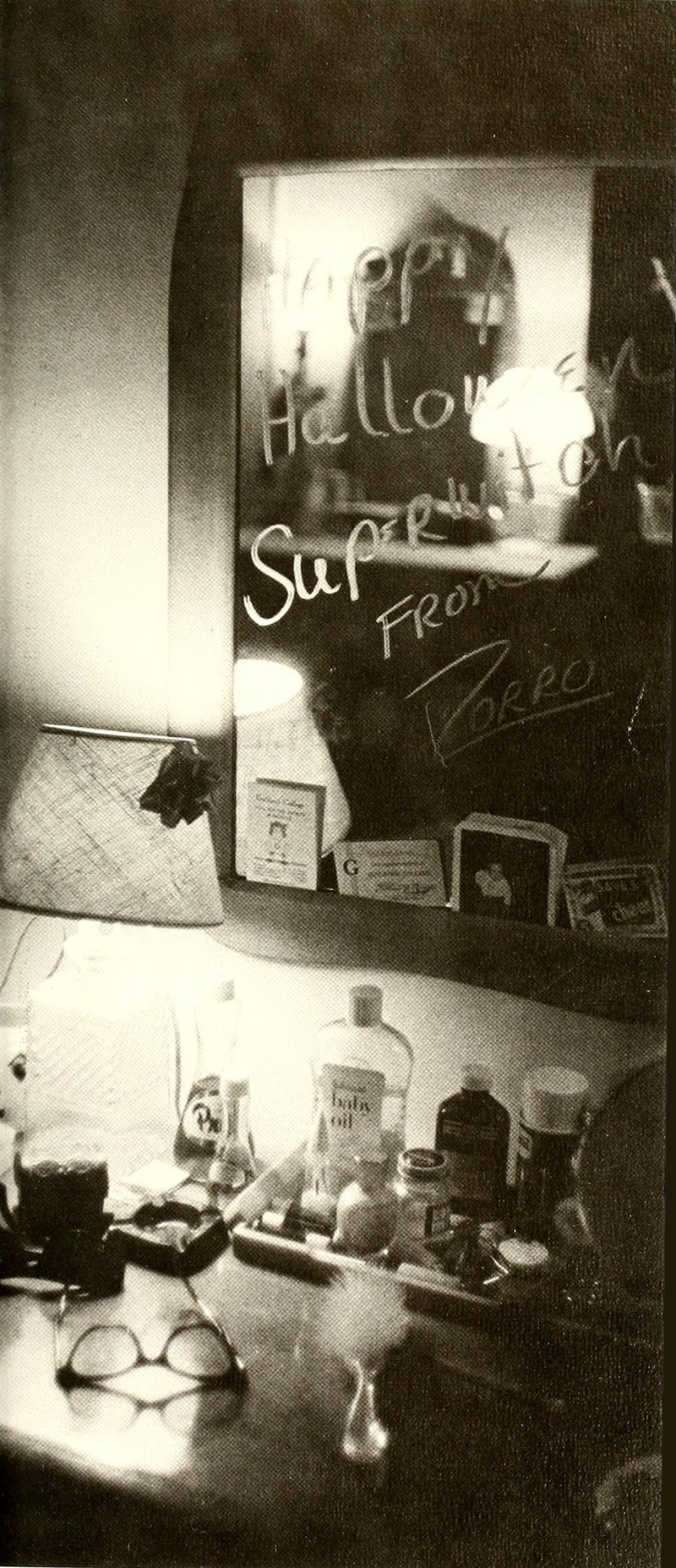 It is mere superstition that on October 31, Zorro will scrawl in lipstick, "Happy Halloween superwitch" on one's mirror. From Guilford's 1967 yearbook.
