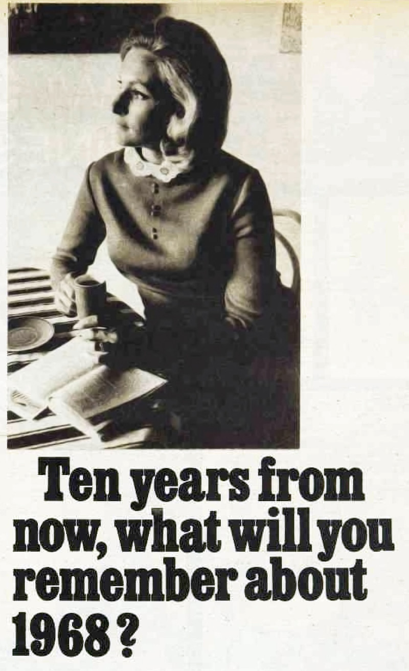 "Ten years from now, what will you remember about 1968?"  From The Australian Women's Weekly, 1968.