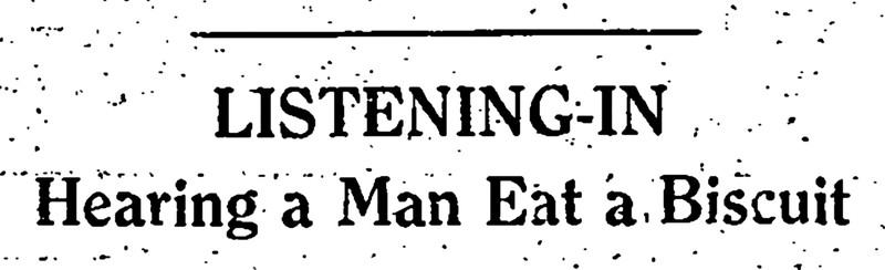 "Listening in.  Hearing a man eat a biscuit."  From The Children's Newspaper, 1923.