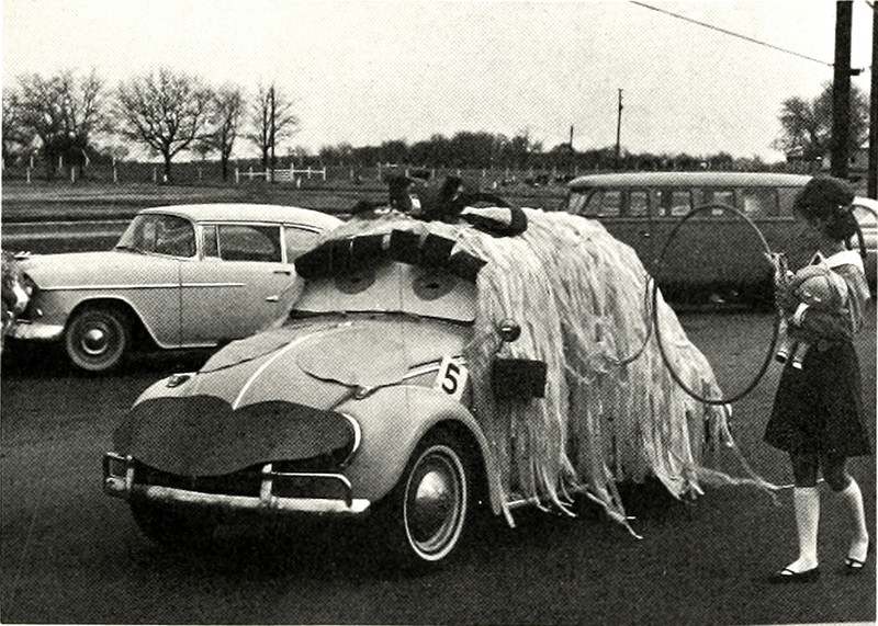 Though to this day it's difficult to get Volkswagens to jump through hoops, this is important proof that vintage automobiles look good in mop wigs. From Middle Tennessee's 1966 yearbook.