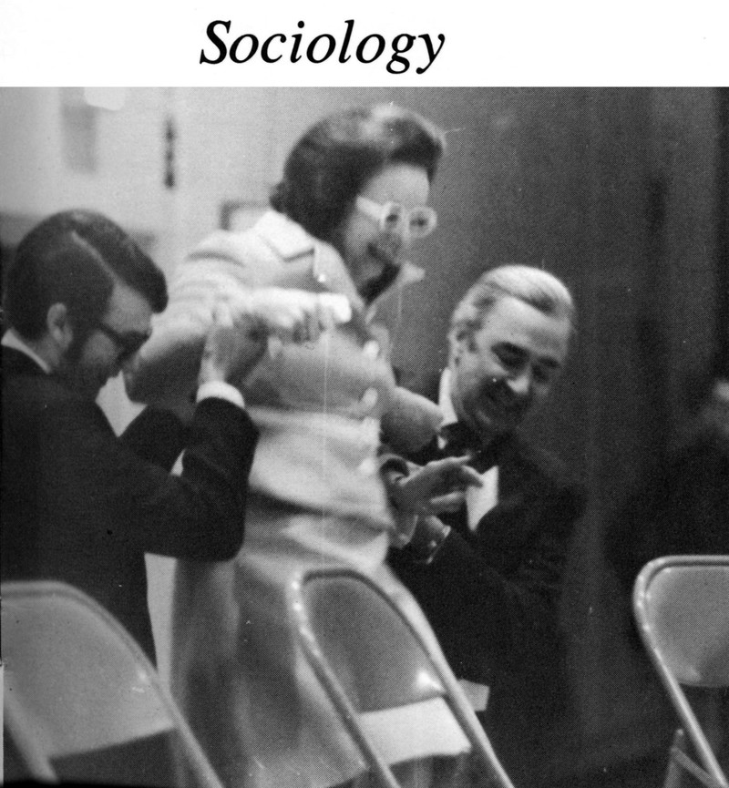 The most unlikely pairings of photos to college departments that we've encountered to date. Or are they the most perfect pairings? From Missouri Southern's 1971 yearbook.