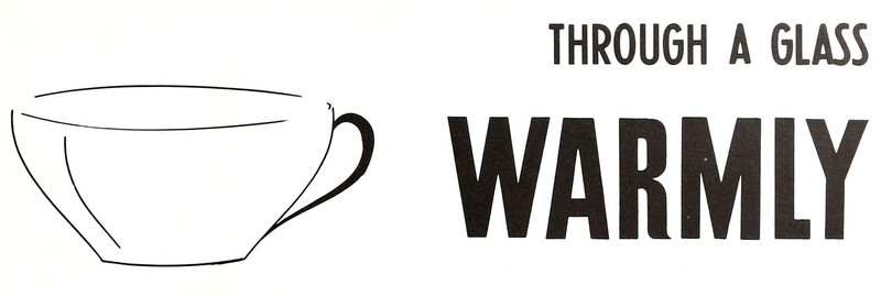 Surprisingly, this page from a religious college's yearbook revises the Bible, changing "through a glass, darkly" (1 Corinthians 13) to "brightly," a revision used by anti-religionists. (There's even a book with this revision as its title: Through a Glass Brightly: Using Science to See Our Species as We Really Are.) Unable to control themselves, the yearbook editors ran with the revisionism and brought coffee into it: "Through a glass warmly." From Mount Olive's 1963 yearbook.