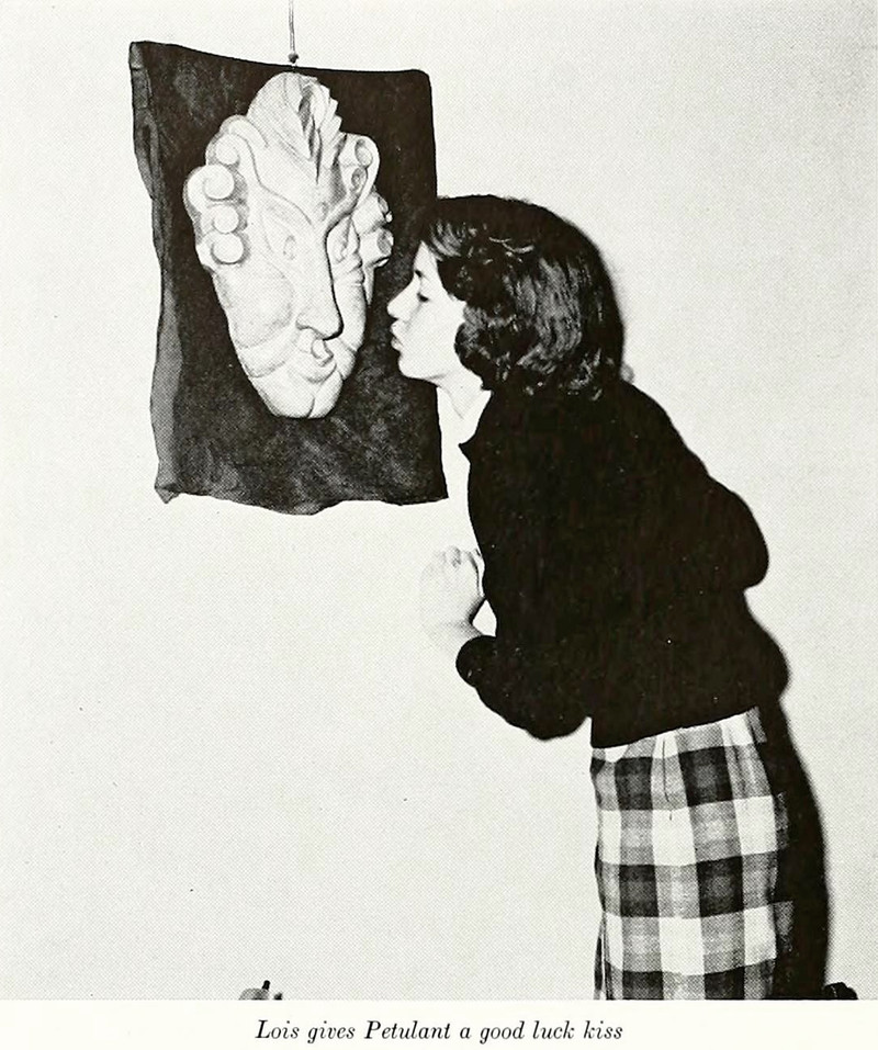 "The 'Phantom Nude' may still be here!" We analyzed this photo with our custom Uncanny Detector app, and sure enough, one of these mannequins is, indeed, a phantom. Can you sense which one? It's the headless, dancing one in the back. From Palm Beach's 1970 yearbook.