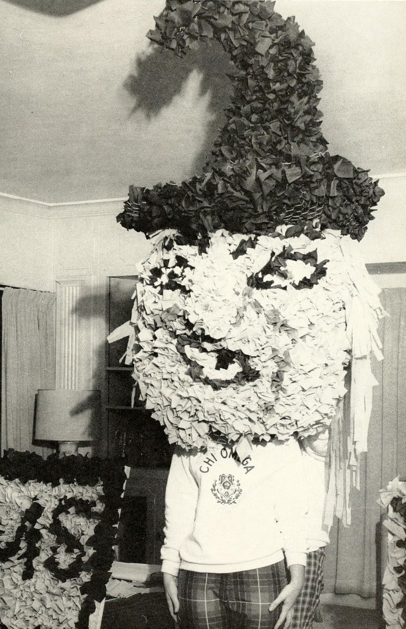 As proud mop-wig wearers ourselves, we spotted the mop wig first thing.  From Alderson-Broaddus College's 1960 yearbook.