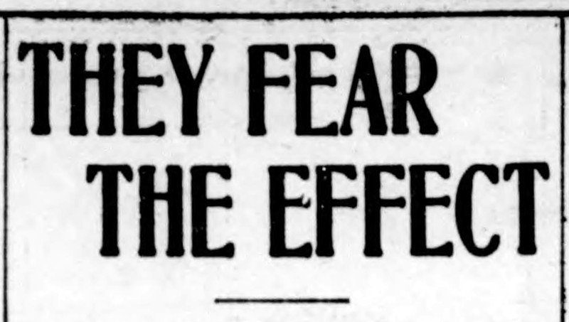 "They fear the effect."  From the Duluth Evening Herald, 1908.