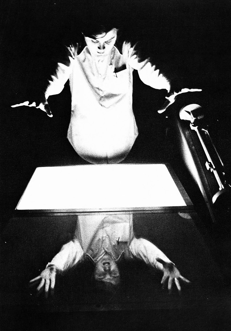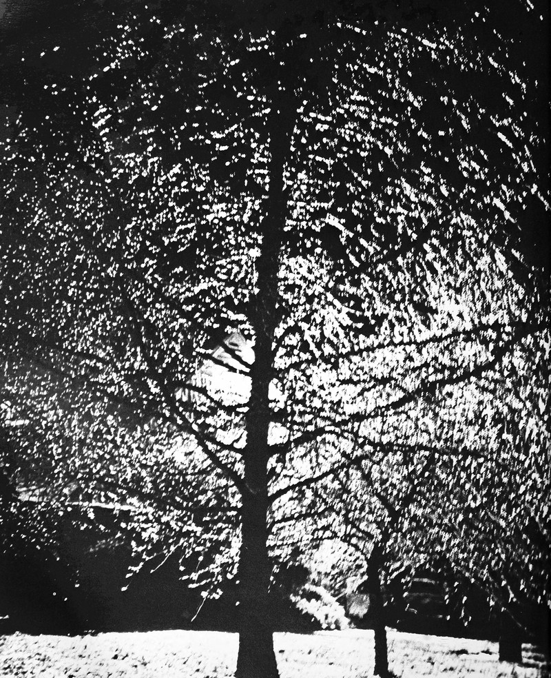 Mysteriously glowing trees spread in a forest of their own, seen only through the windows of vintage college yearbooks. From Indiana University's 1974 yearbook.