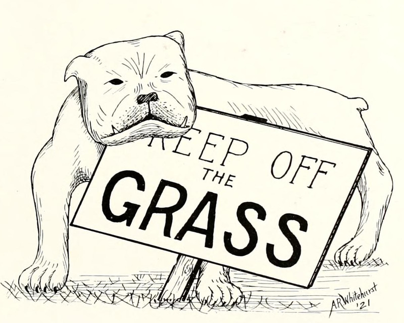 #vintage illustration #dog #vintage yearbook #yearbook #1920s #illustration #sign #keep off the grass