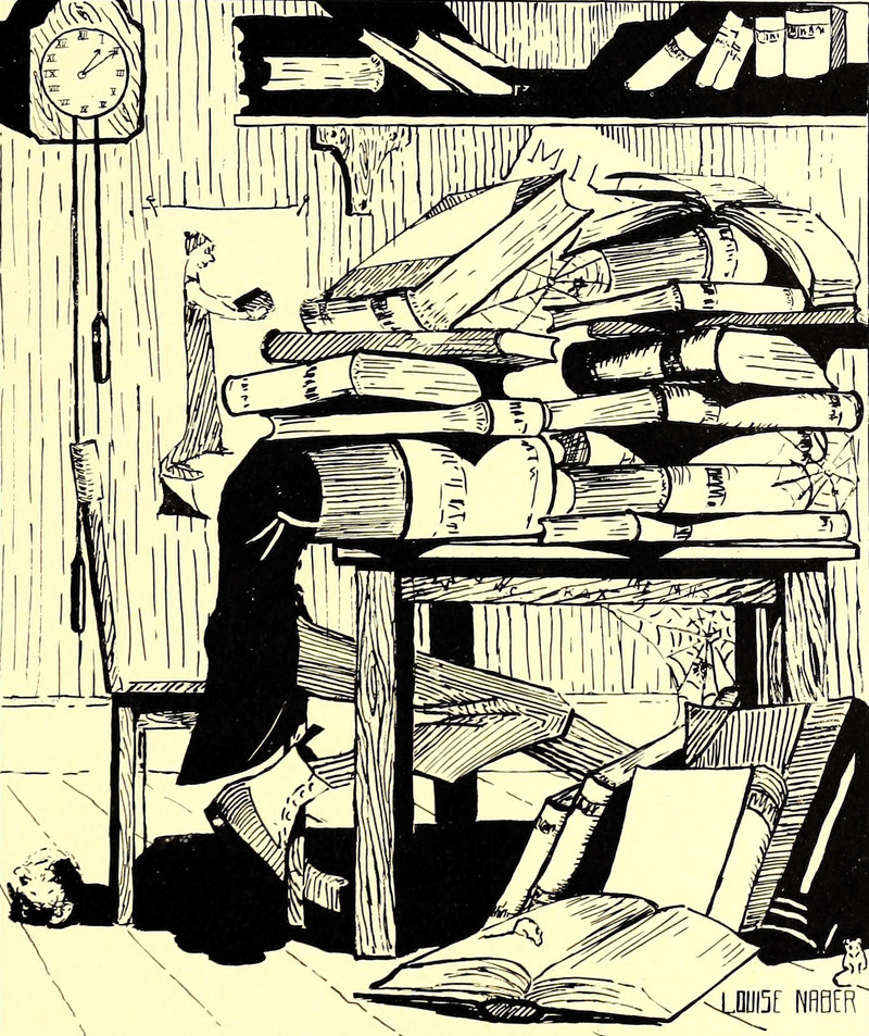 Given how a booklover's shelves tend to sag, making the world one's bookshelf might be a practical solution. From Moline Community College's 1961 yearbook.