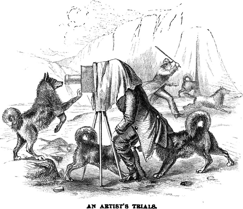 An illustration from an 1860 issue of Harper's magazine.  The caption reads: "An artist's trials."