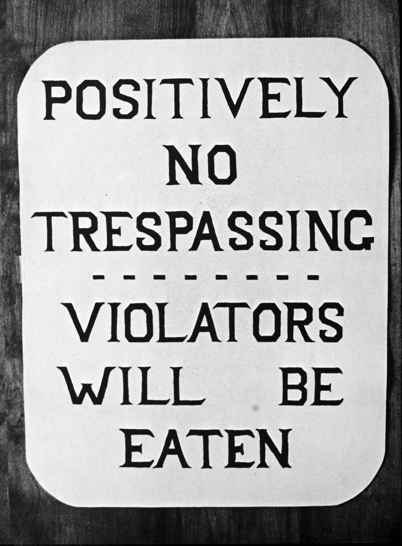 "Positively no trespassing.  Violators will be eaten."  From the University of Akron's 1971 yearbook.
