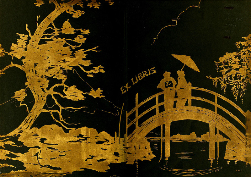 #vintage illustration #vintage japan #japanese art #vintage yearbook #yearbook #japan #bridge #endpapers #ex libris