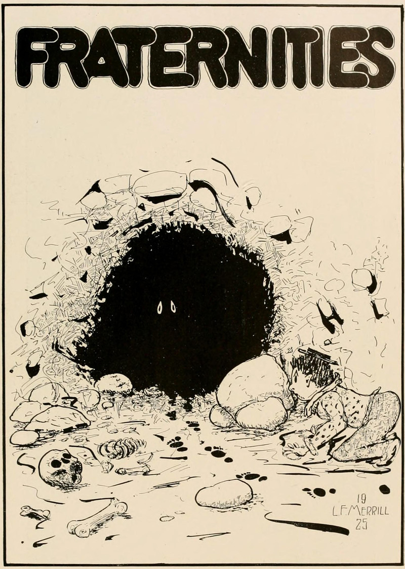 #vintage illustration #fraternity #vintage yearbook #cave