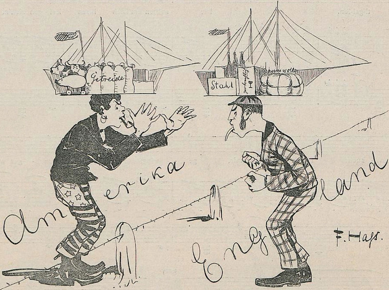 Sir Marmalade the Mouldy thumbs his nose at a sea monster. From Judy, Or The London Serio-Comic Journal, 1882.