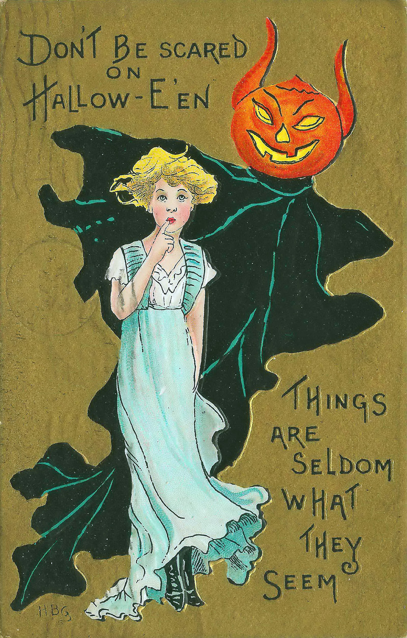 The first line says that "Nobody knows it better than you do." This indicates that your deepest instinct about this year's Hallowe'en will prove correct. Note that two characters in this scene laugh: a lame boy and a constable—a foreshortened leg and the long arm of the law. We interpret this as meaning that high spirits are the long and short of it. At the heart of the scene is a secret. The character Biddy Mary proclaims that if there's anything on earth she does love, it's a secret. She repeats this statement until the end of the scene, as if giving the maximum emphasis possible that a delicious secret will be learned this Hallowe'en. Note that every character in the scene except one is facing left. Biddy Mary is facing right, suggesting that her secret will carry things forward in some way. The scene ends with Enlarged Snookums' own echoing words, "Oh, goody, goody, goody!" This reinforces the positivity of the oracular reading as well as suggests Hallowe'en treats/goodies. It's a profoundly favorable reading with a juicy secret at its heart.