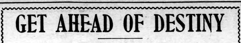 "Get ahead of destiny."  From the Duluth Herald, 1910.