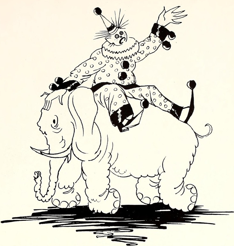 #vintage illustration #elephant #clown #vintage yearbook #yearbook #illustration